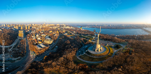 kiev, drone, panorama, sunset, city, view, landscape, aerial, town, sky, skyline, architecture, urban, travel, city landscape, sea, river, europa, mountain, tower, building, building, water, panoramic, blue, phoenix, statue, historical building
