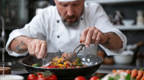 food, kitchen, cooking, chef, cook, eatery, pan, preparation, preparing, hand, meal, vegetable, home, people, professional, stove, chicken, woman, cookery, uniform, vegetable, dinner, person, plate, dish