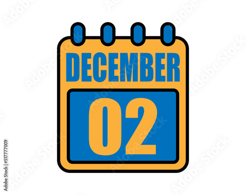 2 December calendar. December calendar icon in blue and orange. Vector Calendar Page Isolated on White Background.