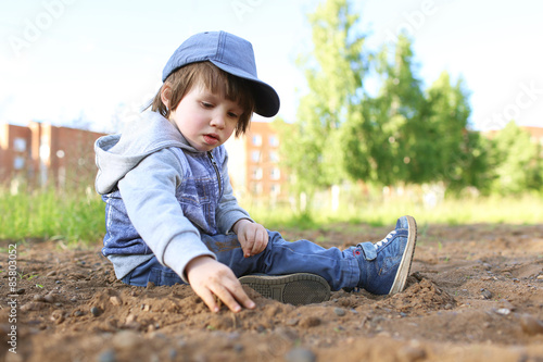 2 years boy playing with sand