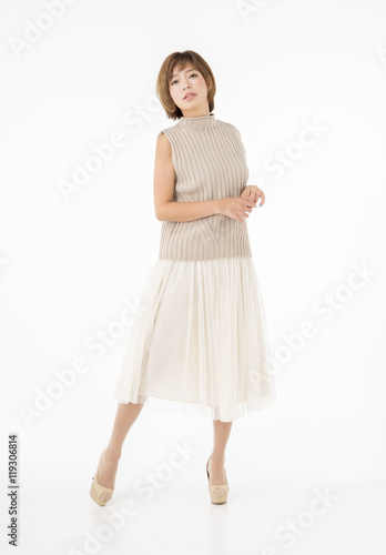 woman, casual, pose, people, portrait, japanese, young, pretty, pretty, refreshing, 30s, smile, student, homemaker, wife, wife, indoor, copy space, studio, lifestyle, relax, relax, light, fashion, girl, clothing, model, short hair, adult, sweet, beauty, lovely, clean, asian, skirt