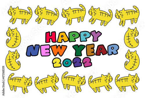 2022年の年賀状イラスト: かわいい虎のフレーム