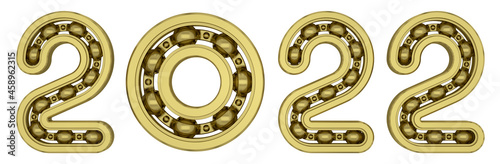 2022, new, year, holiday, happy, happiness, three-dimensional, symbol, number, number, numeration, signs, text, letter, alphabet, industry, engineering, construction, gear, work, equipment, tool, bearing, metal, machine, industrial, design, digit, idea, abstract, background, illustration, white, isolated, concept, creativity, decoration, gold, gold, date, gilt