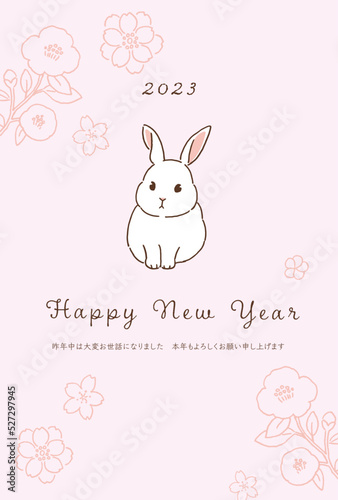2023年卯年 おしゃれでかわいいうさぎの年賀状テンプレートイラストレーション