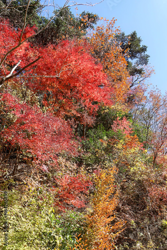紅葉に彩られた美しい宮ヶ瀬湖。 紅葉が美しい。 神奈川県清川村、早戸川林道-2024年