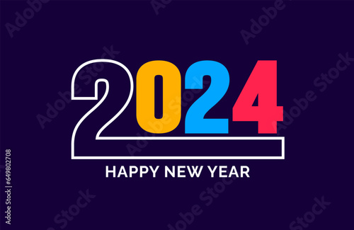 2024 Happy New Year colorful Text logo typography design concept. Xmas greetings with 2024 numbers in the form of colored stained glass. Art design template 2024. calligraphy Vector illustration.