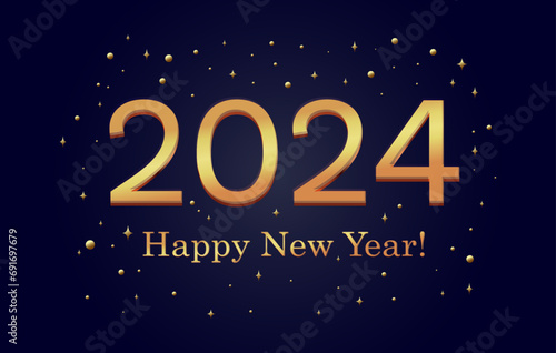 2024 Happy New Year text on a dark blue background. Flat style design. Concept for holiday celebration, greeting card, poster, banner, flyer.