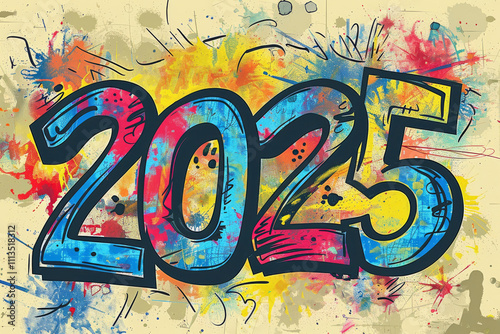 2025, drawing, number, new, year, vignetting, greeting, card, doodle, celebrate, banner, freehand, picture, eve, poster, calendar, painting, text, generative, ai, illustration, font, letter, design, christmas, congratulation, party, holiday, festive, celebration, decoration, number, flier, new year, typeset, element, greeting card, crayons, line, craft