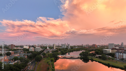 up high, aerial, architecture, bridge, building, cambridge, city, city landscape, cloud, drone, horizon, infrastructure, landmark, landscape, massachusetts, neighbourhood, outdoors, residential, river, road, scenic, sky, skyline, sunset, tour tourism, transportation, travel, tree, us, urban, view, water, new england, city landscape, water reflection
