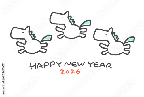 pop, horse, plural, run, sweet, character, fly, 2026, cute, symbol, white horse, loose, illustration, blank space, message, happy new year, ornament, banner, happy new year, character, drawing