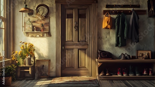 21. A welcoming entryway with shoes and decor, leaving space for a product