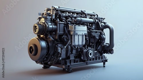 21. **Detailed 3D render of a high-efficiency diesel engine with advanced fuel injection system
