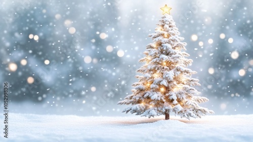 2410_019.resplendent christmas tree, blanket of fresh snow, shimmering golden illumination, stark white surroundings, soft focus snowfall effect, meticulous branch detailing, warm and cool color