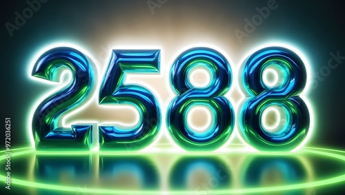 2588 Blue-Green Luminous Letters Symbols 3D Illustration.