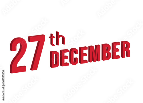 27th December , Daily calendar time and date schedule symbol. Modern design, 3d rendering. White background.