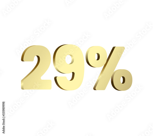 29 percent 3Ds Letter Golden, 3Ds Level Gold color, Twenty-Nine 3D Percent on red color background, and can use as transparent gold 3Ds letter for levels, calculated level, vector illustration.
