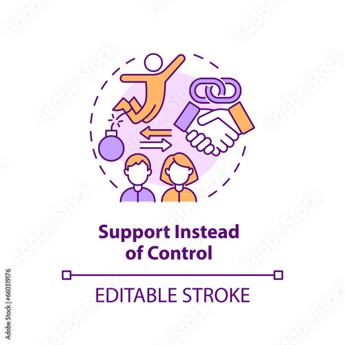 2D editable thin line icon support instead of control concept, isolated vector, multicolor illustration representing codependent relationship.