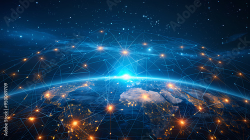 2d illustration world map abstract background.Global network connection. World map point and line composition concept of global business.