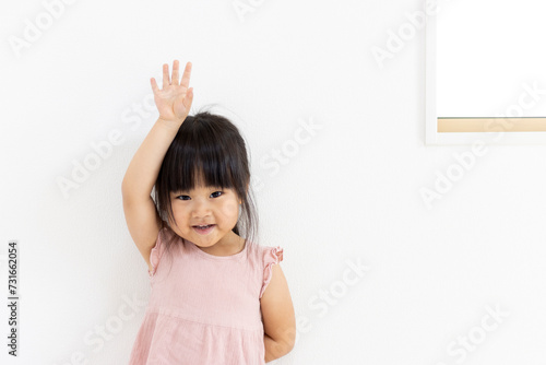 girl, children, hand, copy space, white background, learn, home, japanese, respond, gesture, response, child rearing, indoor, people, light, portrait, voice, pose, study, training, lively