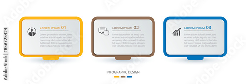 3 data infographics rectangle layout paper template. Illustration business abstract background.