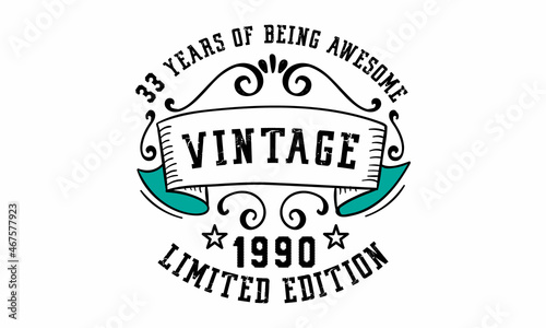 33 Years of Being Awesome Vintage Limited Edition 1990 Graphic. It's able to print on T-shirt, mug, sticker, gift card, hoodie, wallpaper, hat and much more.