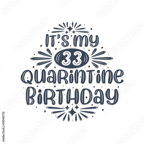 quarantine, birthday, 33, decoration, text, happy, banner, lettering, calligraphy, home, gift, 2020, party, corona, vector, design, card, poster, pandemic, greeting, typography, social, funny, virus, protection, yellow, distance, infection