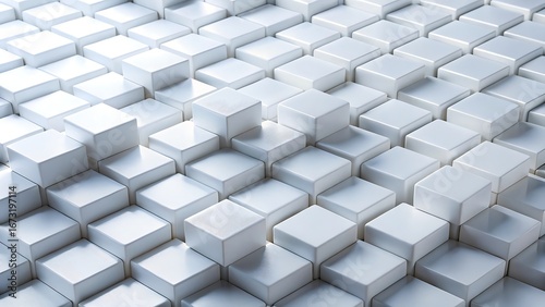 3d abstract background of white cubes arranged in a stepped pattern with subtle lighting and shadow
