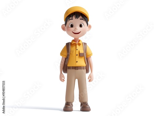 three-dimensional, animation, boy, uniform, tour, guide, standing, center, isolated, white, background, shadow, character, cartoon, human, figure, model, pose, person, professional, men at work, staff, employee, job, occupation, outfit, clothing, attire, dress, full, body, studio, minimalist, simple, clean, blank, render, digital, virtual, graphic, design, style, male, youth, children, teenage, teenage