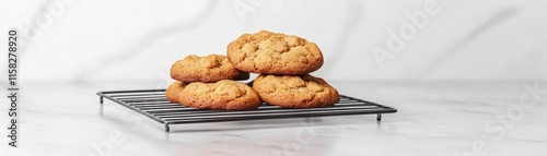 3D Baked cookies cooling on rack in minimalist kitchen delicious treats clean environment culinary delight