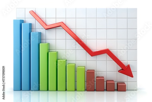3d bar chart showing a sharp downward trend with a red arrow indicating decline
