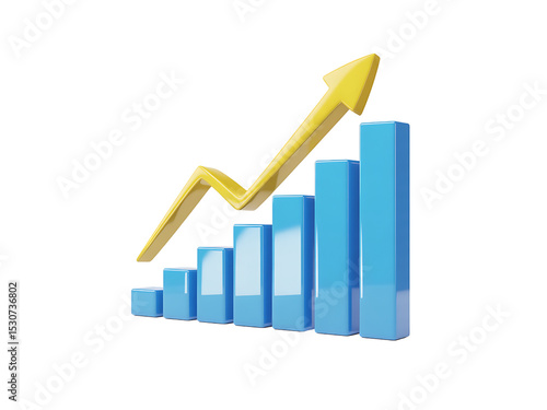 3D Bar Chart with Yellow Arrow: Business Growth and Financial Success