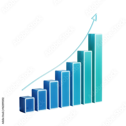 3D Bar Graph Showing Upward Trend with Arrow chart data