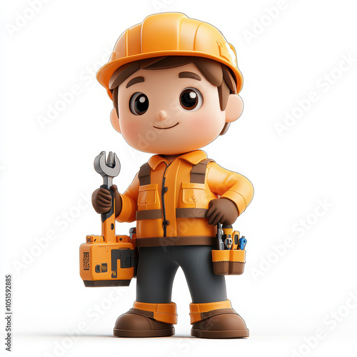 3d builder with helmet and tools