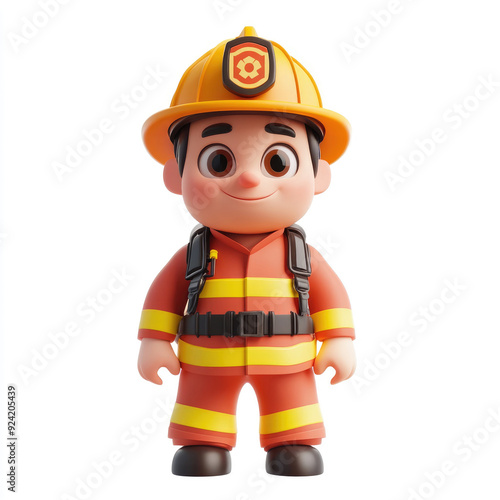 3D cartoon, a male firefighter uniform profession. on a solid white background