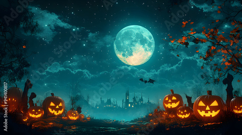 halloween, pumpkin, full moon, three-dimensional, illustration, cartoon, skittish, night, scarey, october, festive, creepy, jack-o-lantern, holiday, graphic, moonlight, horror, haunted, eerie, autumn, party, costume, background, design, animation, ghost, moon, celebration, fright, fun, artwork, event, monster, animated, sorcerer, full, ideal, design