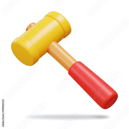 mallet, rubber, red, yellow, cartoon, three-dimensional, hammer, plastic, tool, handle, grip, compact, mechanic, repair, fix, construction, technician, bricolage, utility, household, industrial, vibrant, colourful, isolate, strong, bold, stylish, modern, clean, bright, sleek, safe, hard-wearing, soft, impact, manual, hand-held, equipment, workshop, craftsman, striking, control, neat, protective, ergonomic
