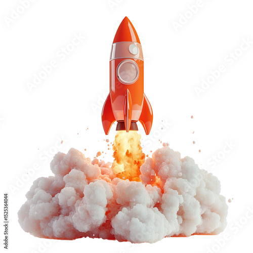 3D Cartoon Rocket Launching into Space on Transparent Background