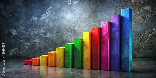 3D Colorful Bar Chart on Dark Surface - Business Data Visualization