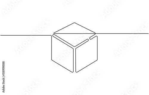 3D cube perfect shapes. Only black and white for preschool kid coloring, comparison, drawing, One Continuous Line Drawing of Delivery Icon.