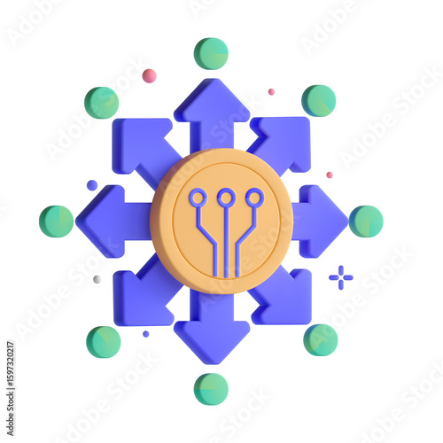 3D Decentralized Finance (DeFi) Icon with Network and Coins