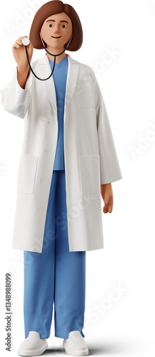three-dimensional, illustration, physician, medic, general practitioner, stethoscope, health care, scrub, person