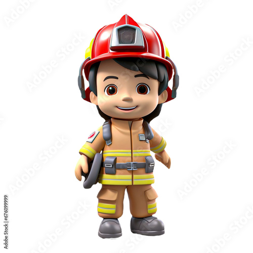 3d firefighter isolated on isolated transparent background png. Generated with Ai