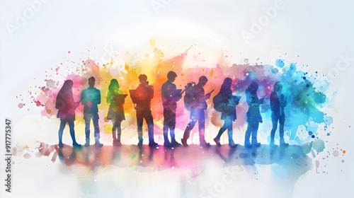 3D Flat Icons: People Engaging with Watercolor Technology on Laptops