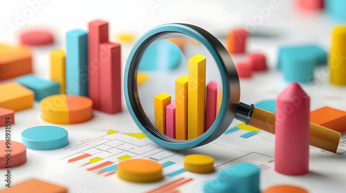 floating, graph, magnifying glass, isolated, white background, vector, financial, business, finance, flying, gravity, minimalistic, modern, clean, text, typography, isolated design, sleek, professional, clarity, digital, branding, marketing, analysis, market, corporate, insight, work, briefcase, dollar sign, executive, management, leadership, calculating machine, chart, planning, strategy, money box, arrow