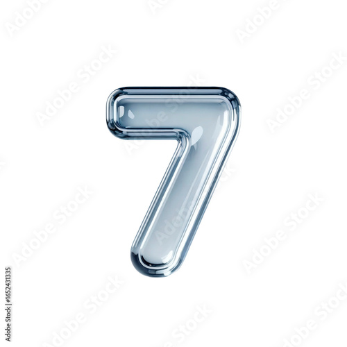 3D Glass Number 7 Transparent Icon, Shiny Blue Crystal Digit, Modern Glossy Typography Isolated on White Background