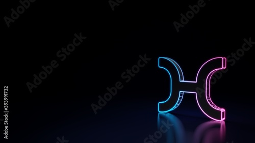 3d glowing neon symbol of symbol of pisces zodiac isolated on black background