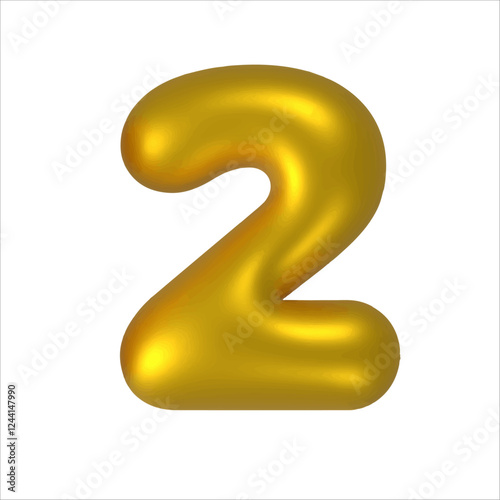 3D gold balloon number font. Number 2. Golden anniversary or birthday party celebrate. Shiny metal typography symbol for sale decoration. Bright font.