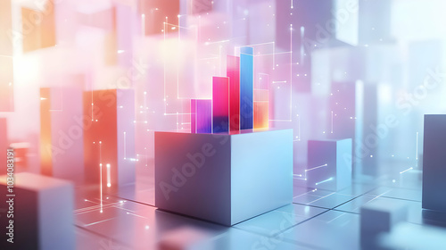3D Holographic Voter Turnout Graph Concept - Wide Shot of a Rising Bar Graph Visualizing Increasing Voter Turnout Percentages with Glowing Data Points and Ample Copy Space on a Sleek Surface - Icon Is