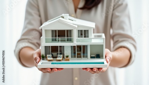 house, home, mortgage, family, new, concept, estate, money, hand, housing, real, holding, loan, building, architecture, property, woman, symbol, residential, human, construction, agent, green, insurance, model, business, investment, small, sale, isolated, handover, buy, real estate, rent, background, delivered