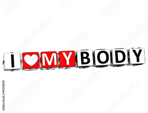 3D I Love My Body Button Click Here Block Text